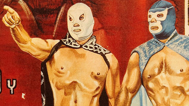 Top image of Santo and Blue Demon Vs. Dracula and Wolfman, an entirely different luchador versus monster film, via Wrong Side of the Art. Hat tip to Steve!