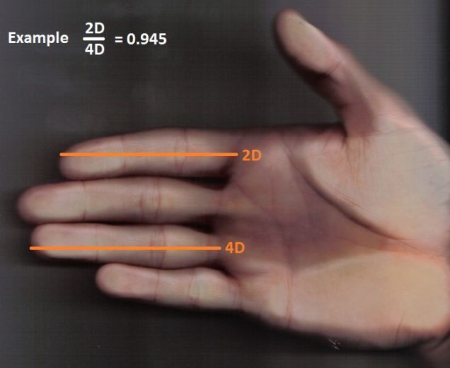 It's been thought for some time that the root cause is sex hormones during fetal development, but this research provides the first experimental evidence. The study traces the occurrence back an androgen and estrogen receptor that controls the growth of our fourth finger. During a very narrow window of digit development, the higher the amount of exposure to androgen, the longer the fourth finger. That's why males tend to have their 4D longer than their 2D, and females have them closer to the same length.