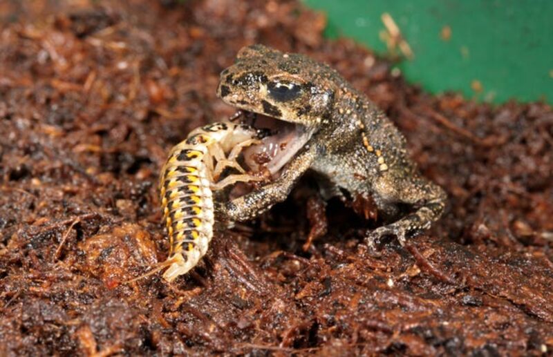 But it turns out that the relationship between amphibians (like frogs and toads) and the larvae of ground beetles is one of nature's rare examples of role-reversal within a predator-prey interaction. That's right — in the case of amphibians and ground beetle larvae, the hunted larvae actually become the hunters; while the amphibians become the prey.
