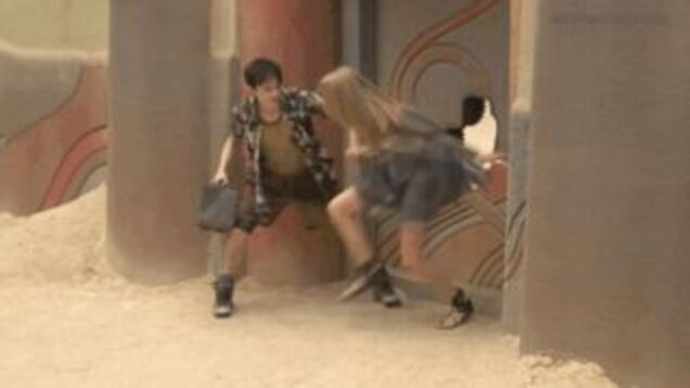 Whatever that mission is—and there’s a distinct “castle dungeon” vibe to this set—it looks like Valérian got caught in avalanche of debris of some kind. (Note that Delevigne’s off-camera in the same dress, so maybe these two scenes are connected?)
