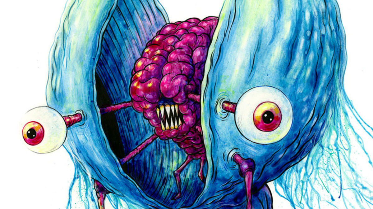 So what exactly is the idea? Well, the Astralnauts are a team of ghost hunters who go around the universe and capture aliens. To capture them, they “Toon” them, basically turning the gross, visceral true form (which fits in with the style of Pardee) down to a more bold, simple form (Richie’s style.) The show features not just paintings of the original forms, which are done by Pardee, but the captured, tooned, versions as well—done by Richie, and much more. Here are some examples of work from the show.