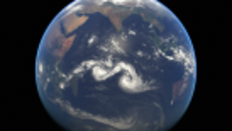 This composite image, comprising infrared data from the geostationary orbiting satellites of EUMETSAT and the JMA, illustrates that both storms are located well south of the nearest inhabited islands, where neither is anticipated to have a "high humanitarian impact."